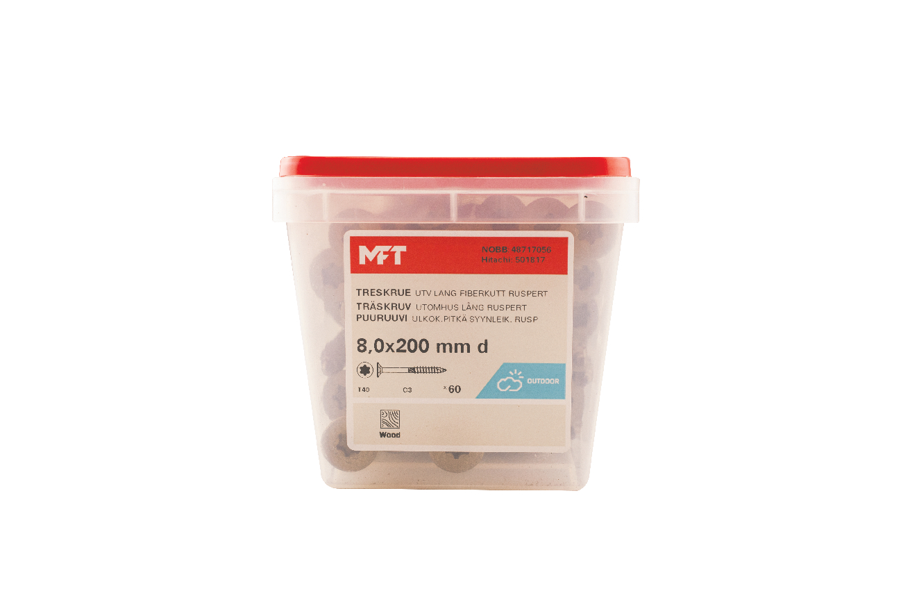Long wood screw for outdoor use