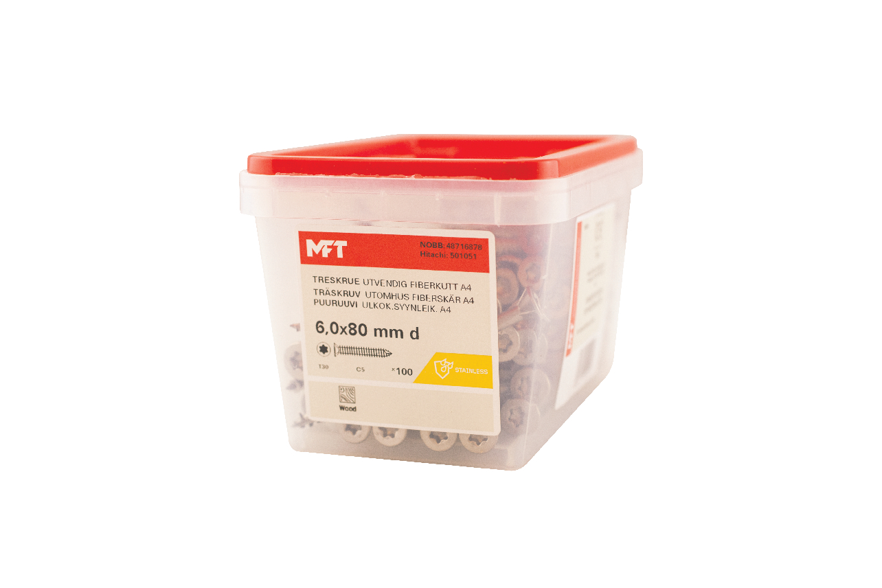 Acid proof A4 MFT-screws are convenient for installations in salty air, demanding circumstances and humid climate.