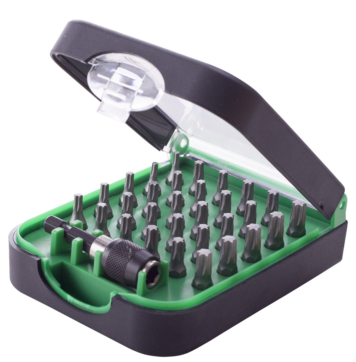 Includes: Bit holder Torx: 10 (x2), 15 (x3), 20 (x10), 25 (x10), 30 (x5)