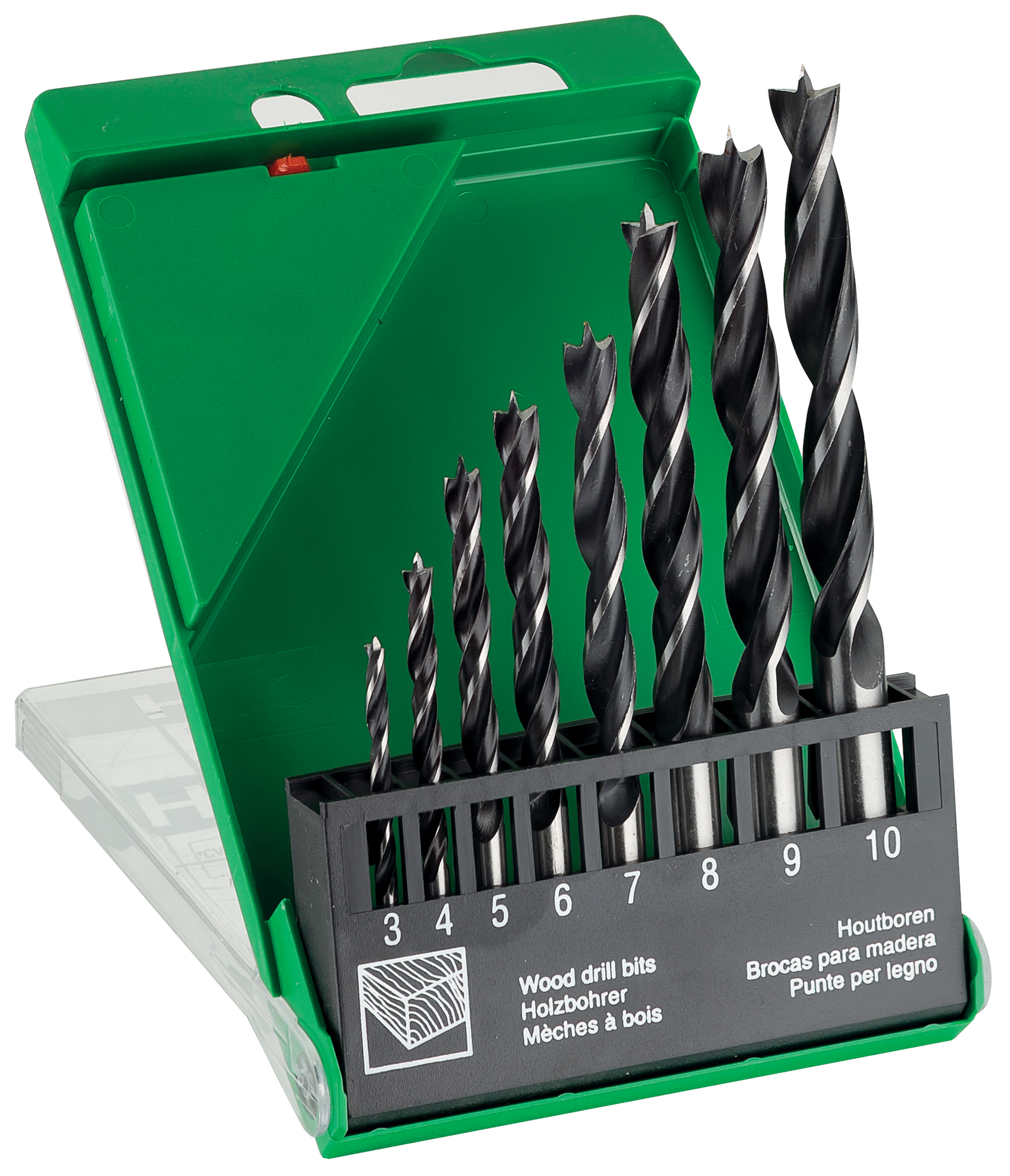 - BRAD POINT WOOD DRILL BIT CASSETTE 8-PCS 3/4/5/6/7/8/9/10MM
