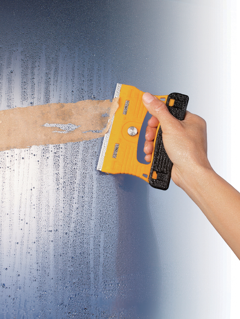 Perfekt for profesjonell rengjøring og skraping av store glassflater og fasader. Rustfritt blad “GSB-1S” av solid OLFA kvalitet, 0,25 mm. og sitter godt festet.